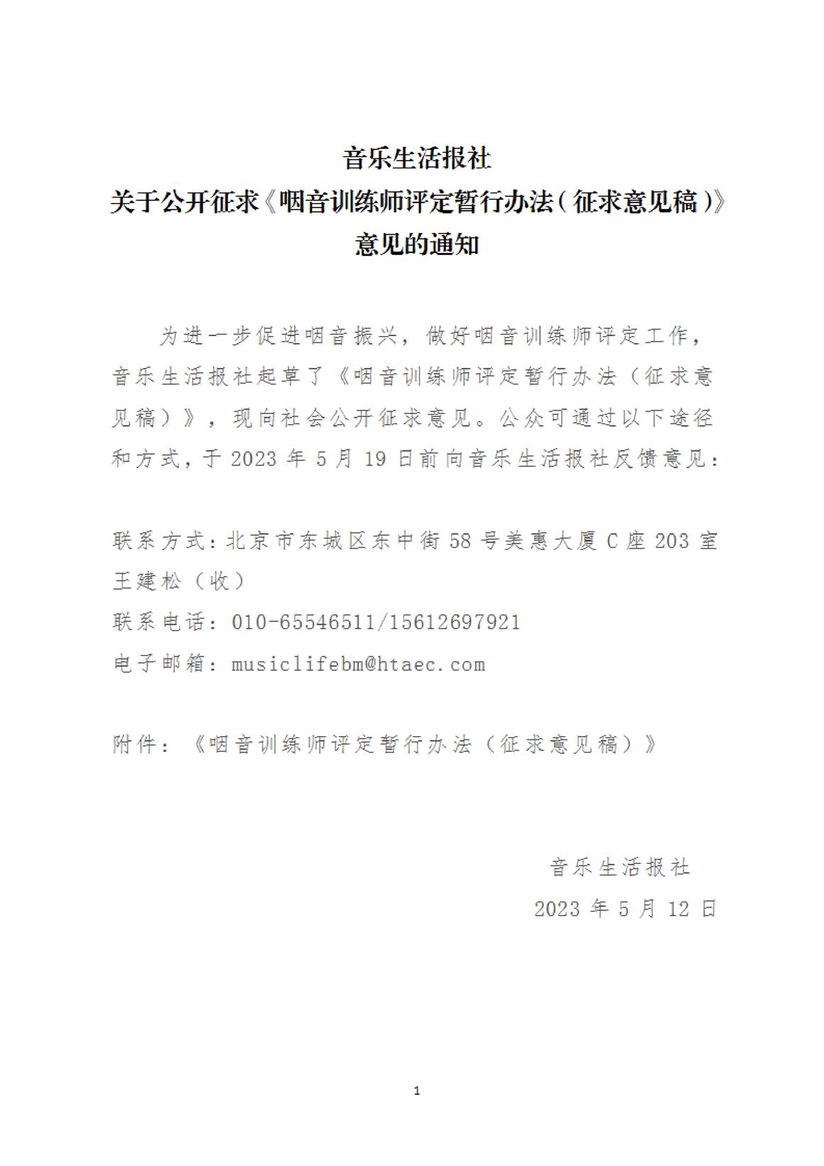關(guān)于公開征求《咽音訓練師評定暫行辦法(征求意見稿)》意見的通知
