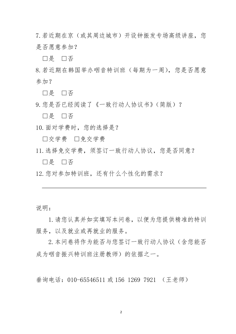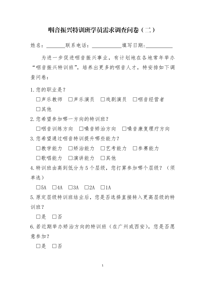咽音振興特訓(xùn)班學(xué)員需求調(diào)查問卷(二)